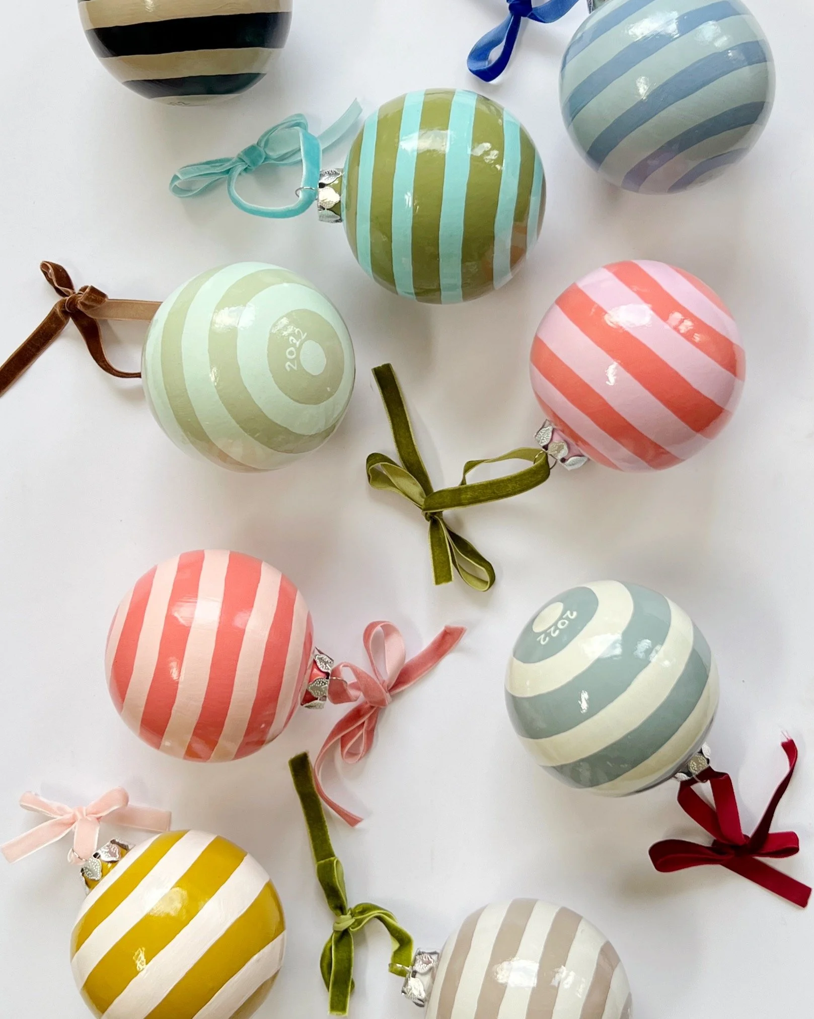 Every year since 2020, I have released an exclusive assortment of handpainted ornaments. No two are alike, and each year features a different design. Every ornament is dated, finished with a clear gloss varnish, tied with a velvet ribbon, and packaged in a keepsake box with a numbered card to show limited production.